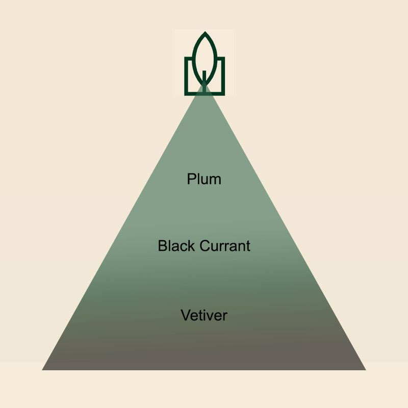 Sočna šljiva u gornjim notama vodi u bogato srce crnog ribiza, koje se zaokružuje elegantnom bazom vetivera. Moderan miris s izraženim voćnim karakterom.